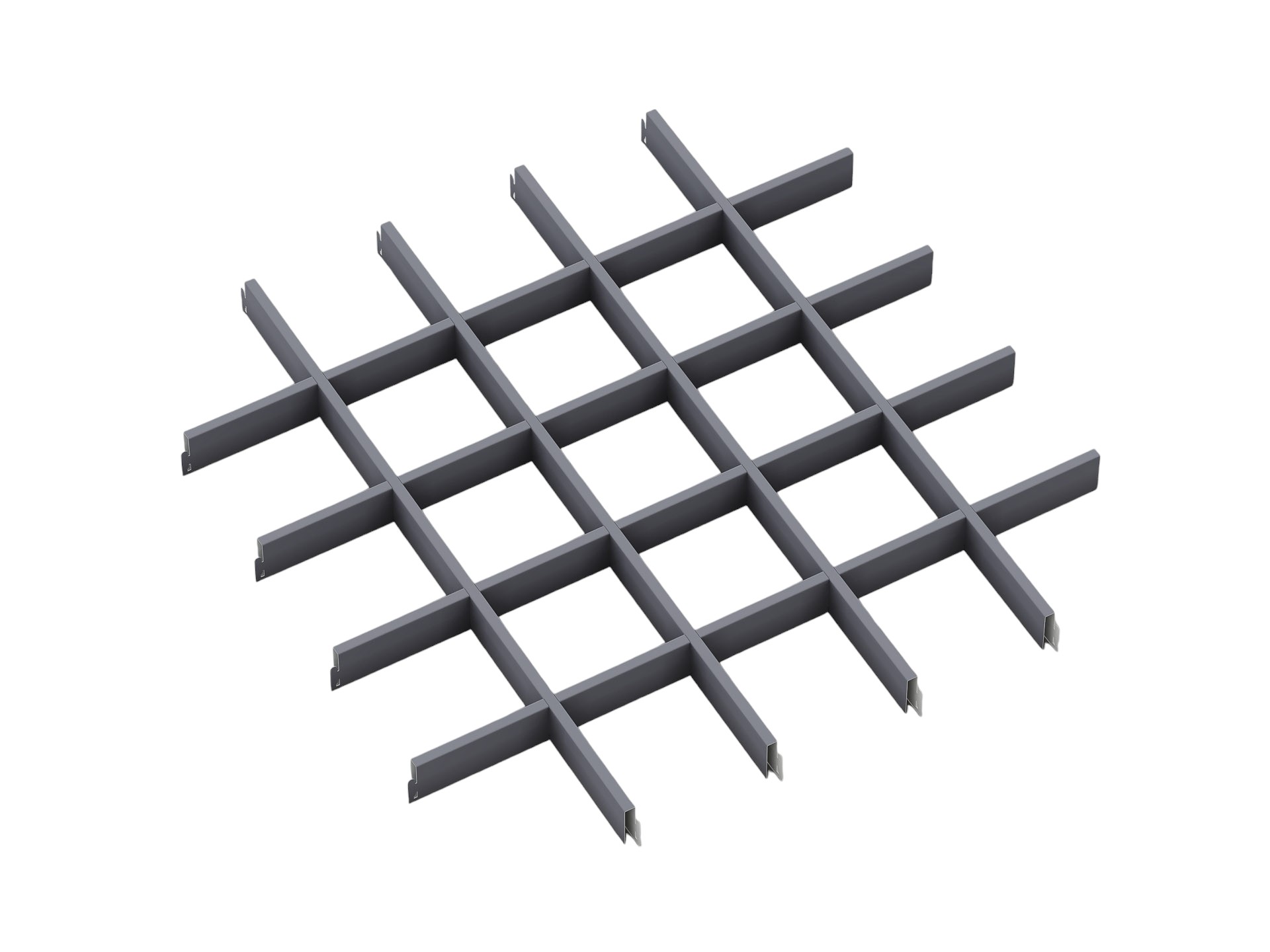 - Крупные ячейки 120x120 мм для ощущения открытости: Ячейки большого размера 120x120 мм создают эффект просторного и структурированного потолка, что визуально увеличивает объём помещения. Это делает потолок идеальным для крупных пространств, таких как торговые центры или офисы с открытой планировкой.